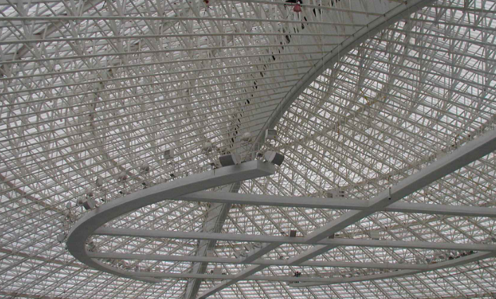 该网架加工凌源公司名目师表示,比来几年来国内能源根底设置装备摆设装备摆设建立步伐加快,包括核电站用钢、风电用钢、锅炉用钢架等,表现出历久需要茂密。铁路纽带运输本领已经发展成为纽带和纽带的一种趋势。诸如城市地铁、轻轨、城铁和高架桥等城市建筑用钢范围将会不休承继减少。在当下国内倡导的绿色低碳的可承继发展理念下,可摄取材料将会呈现网架化结构室第高速发展的卓越趋势。